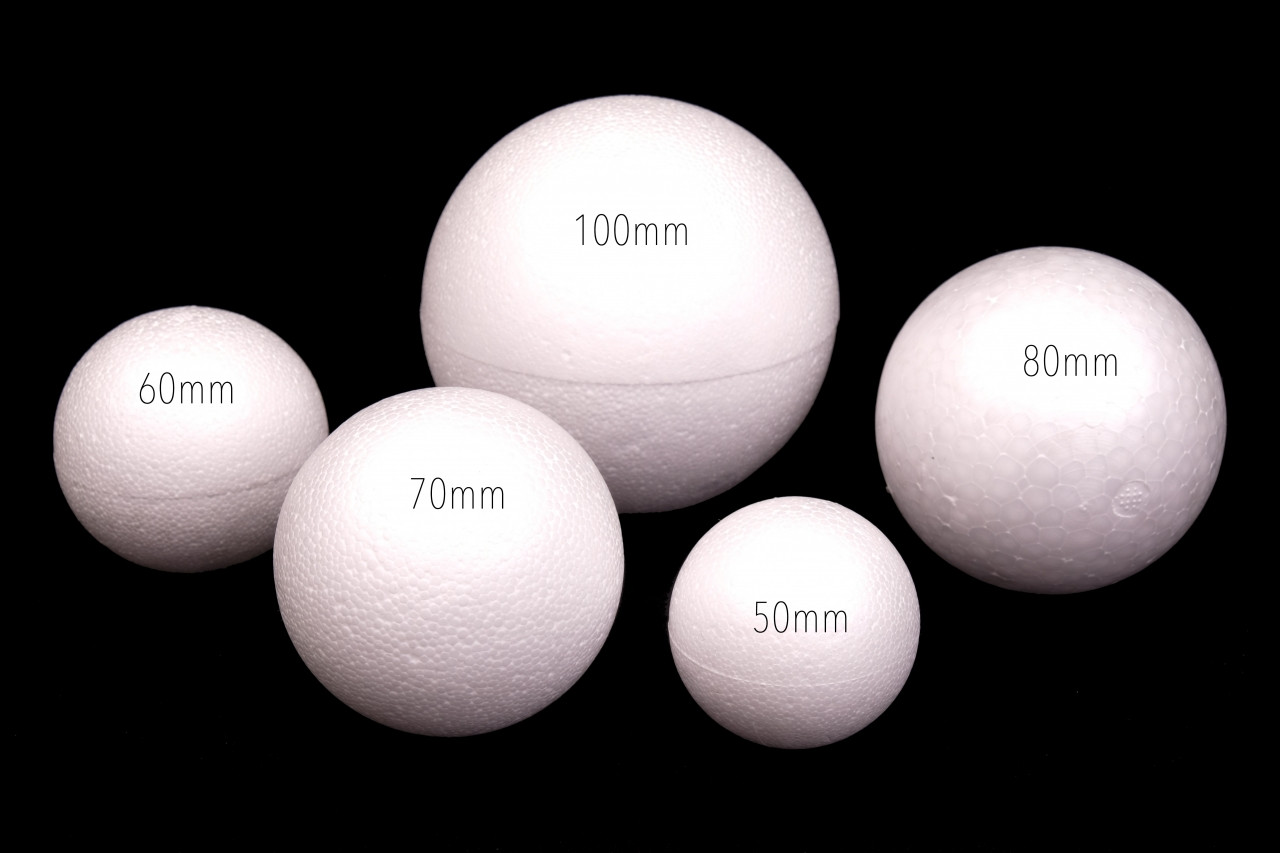 Polystyrenové koule. Jsou vhodné pro pletení z pedigu a jiné aranžérské práce.