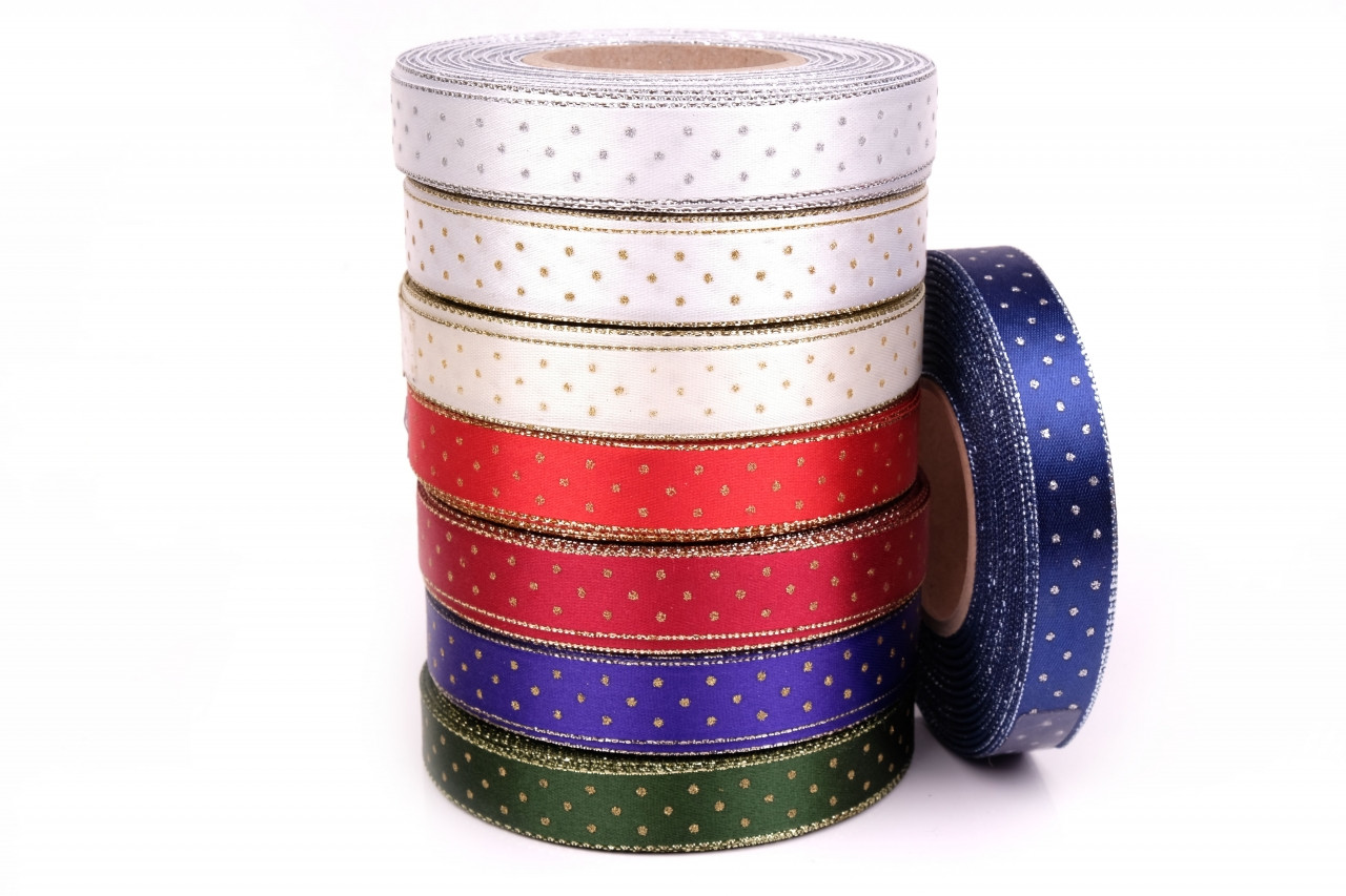 Stuha atlasová oboulící s rexorem puntík šíře 15mm