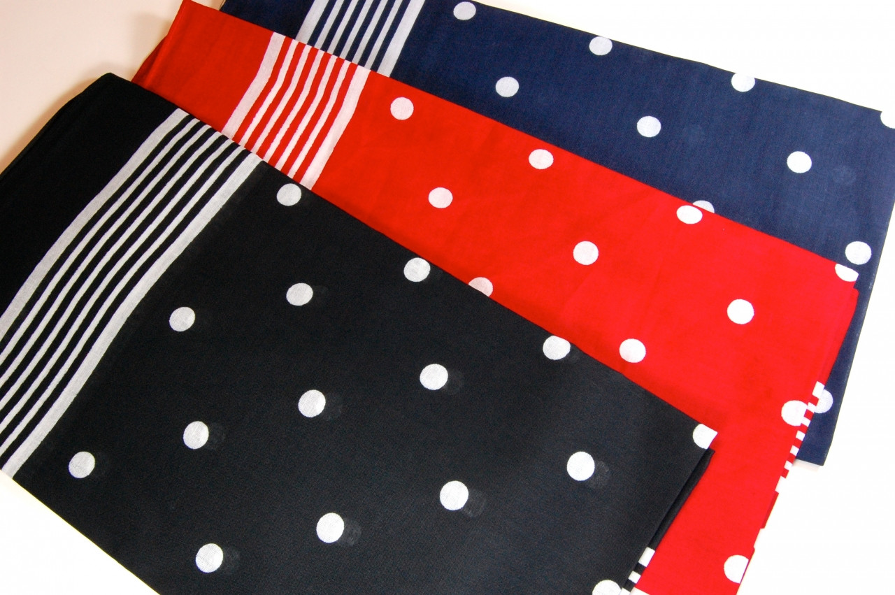 Šátek z bavlněného plátna. Motiv šátku je v retro stylu. Šátek můžeme uvázat na hlavu přeložením do trojúhelníku nebo jej omotat kolem krku. Bavlněný šátek je vhodný doplněk pro motorkáře, turisty, sportovce či hudebníky.