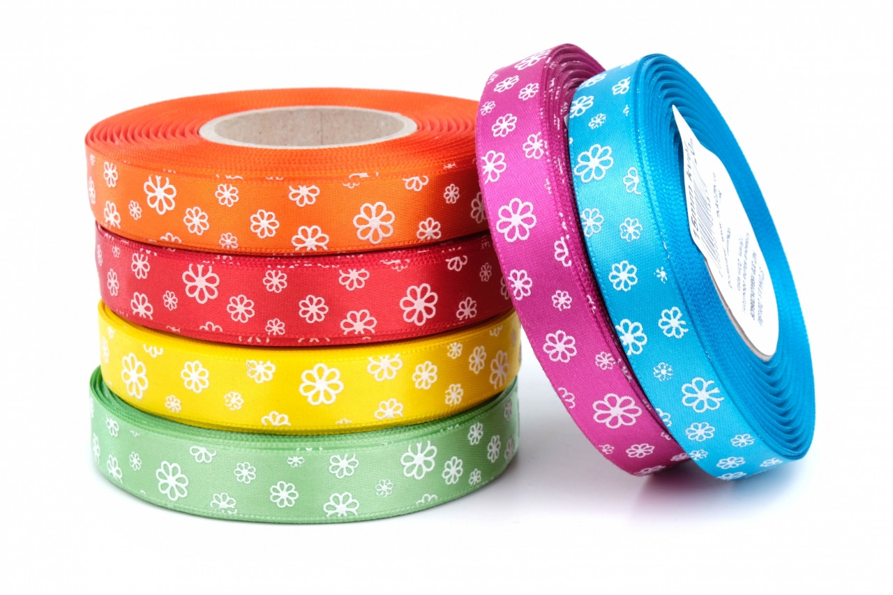 Stuha atlasová oboulící šíře 15mm tisk květinky