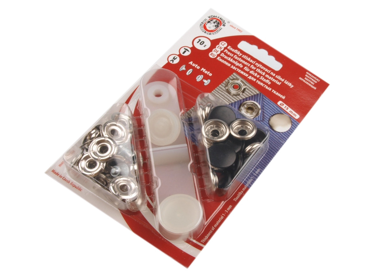 Balení jedné karty obsahuje 10ks nýtovacích knoflíků na silné látky
