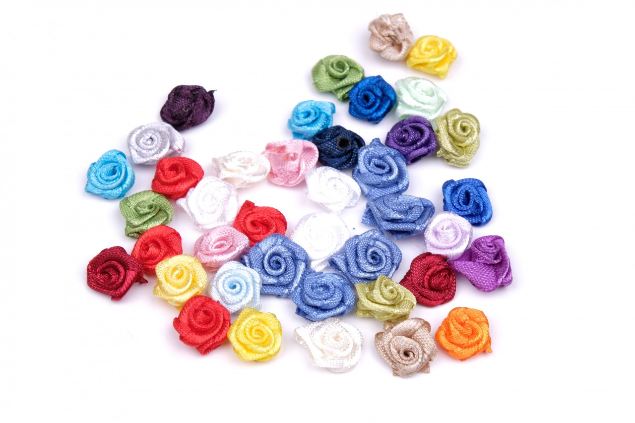 Růžička saténová či atlasová skládaná vhodná k šití i lepení jak na oděvy tak na dekorace. Alternativní název: růžička atlasová, růže, květinka textilní, růžička saténová.