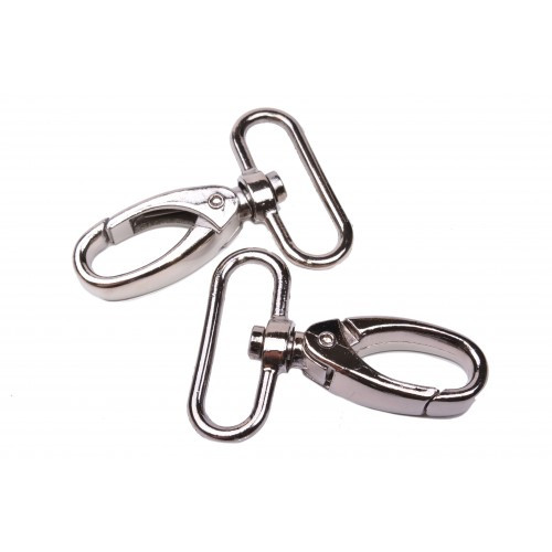 Karabina kovová otočná - použití: připojení popruhů na tašky, kabelky, klíčenky, psaníčka nebo brašny.