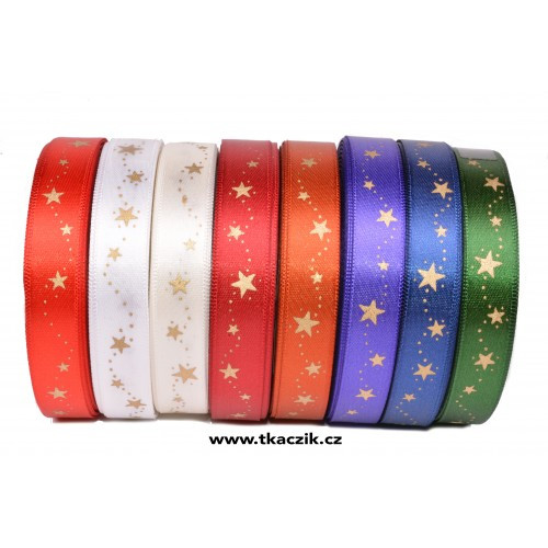 Stuha atlasová oboulící šíře 15mm tisk hvězdy