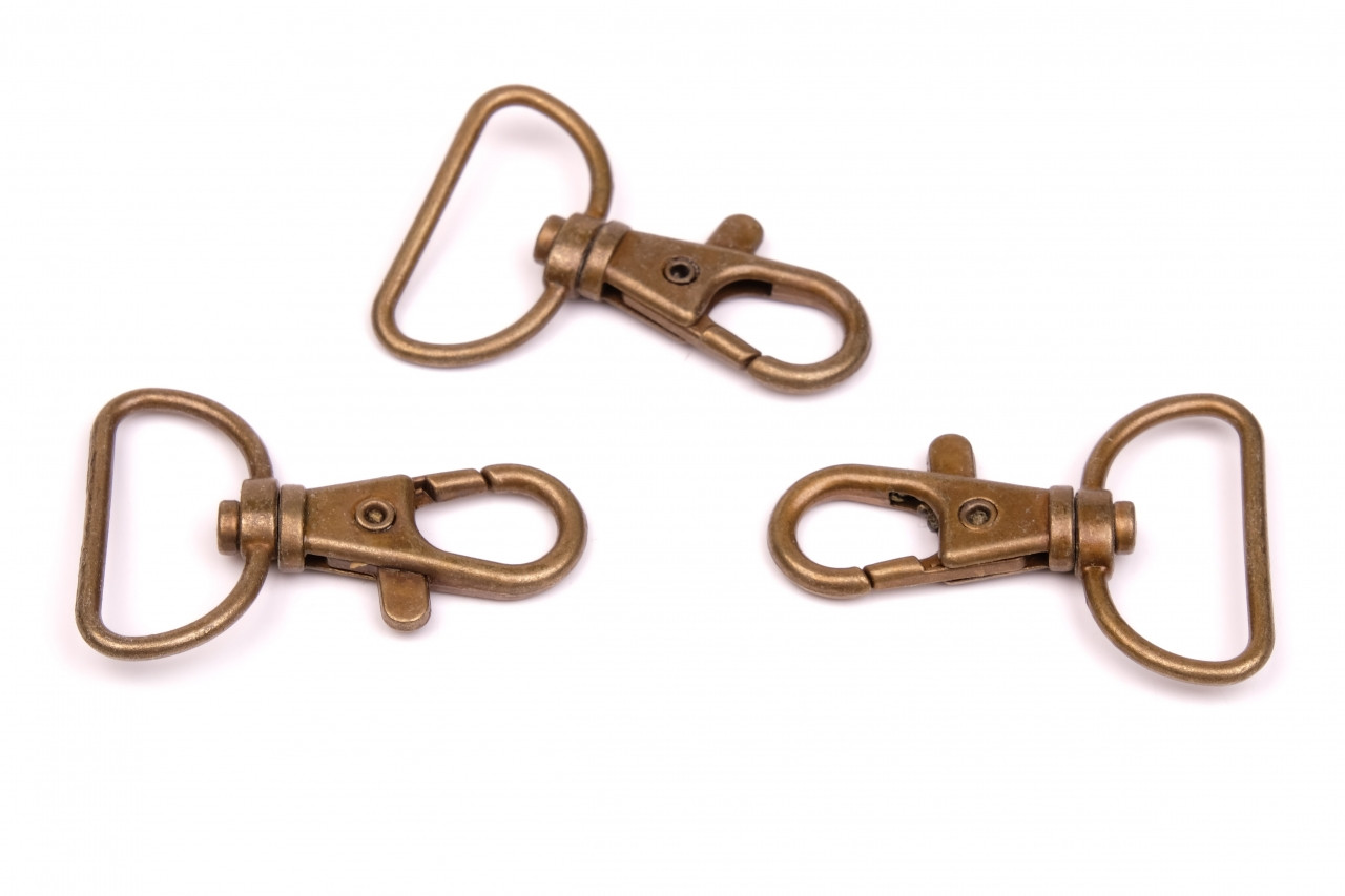 Karabina kovová otočná průvlek 2,5cm staromosaz