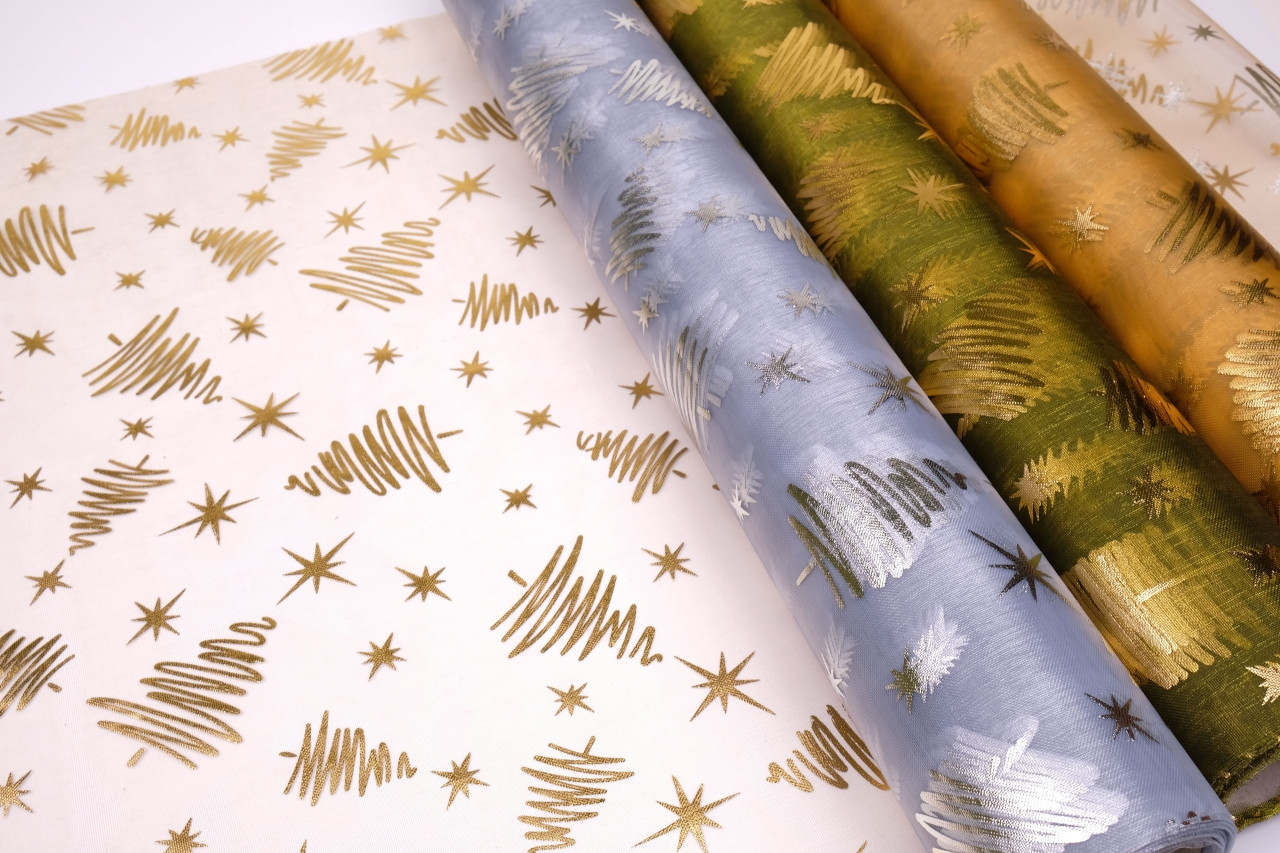 Organza neobšitá vzor 697 stromek šíře 39cm návin 8m