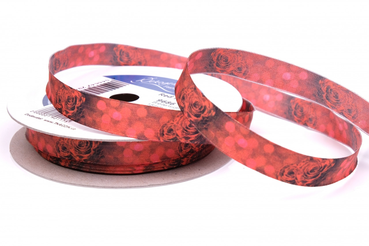Stuha s drátkem 9686 šíře 15mm červené růže