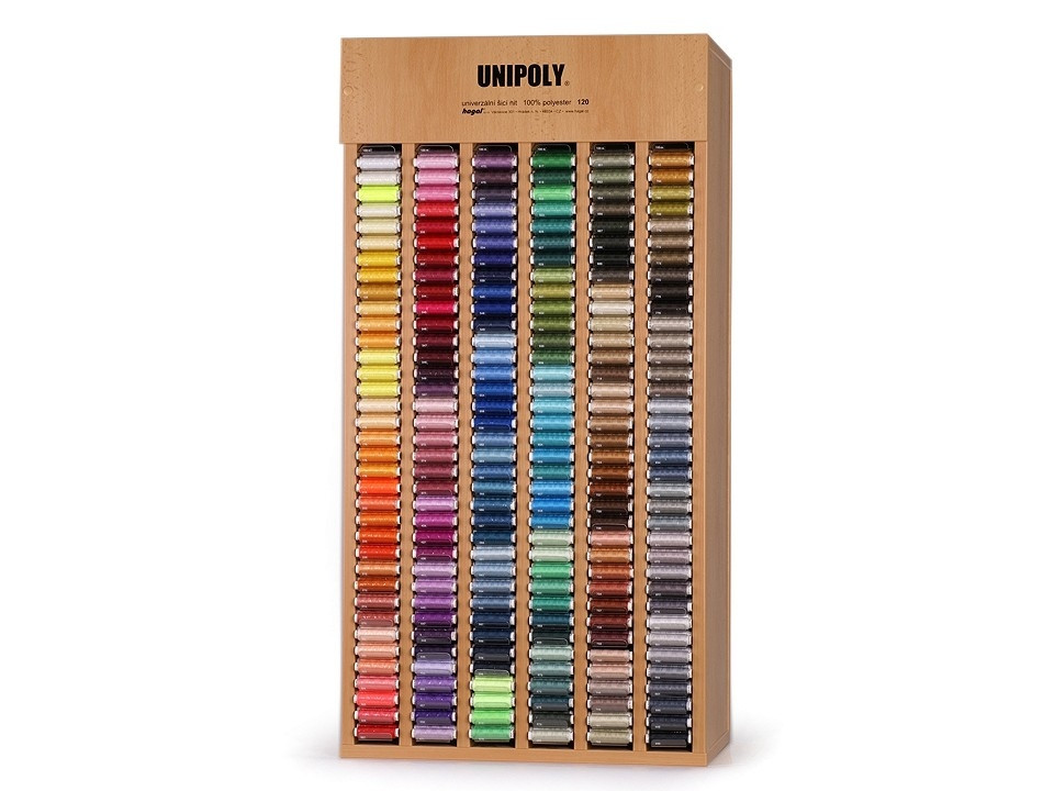 Stojan nabízíme k zapůjčení zdarma, účtuje se pouze náplň. Stojan obsahuje 216 barev tj. 2160 cívek nití 100m.