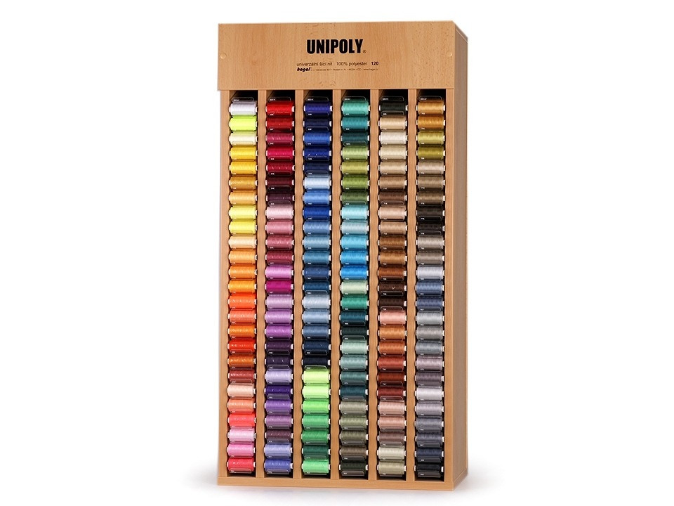 Stojan nabízíme k zapůjčení zdarma, účtuje se pouze náplň. Stojan obsahuje 150 barev tj. 1500 cívek nití 500m.