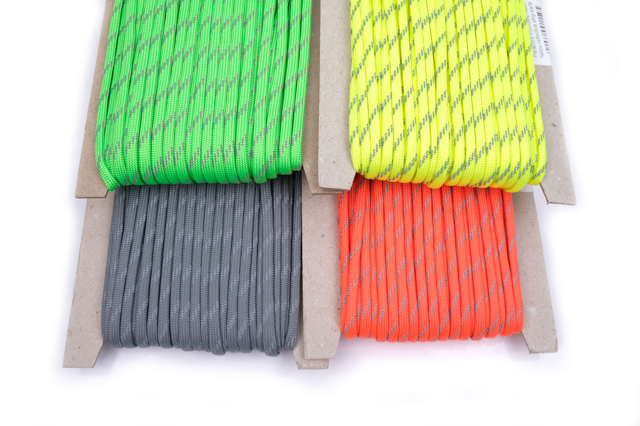 Vysoce kvalitní a pevná, přitom měkká a poddajná šňůra s výplní dle normy armády USA, průměr cca 4-5 mm, použitelná např. pro "náramky přežití", vodítka nebo obojky pro psy, klíčenky či přívěsky.