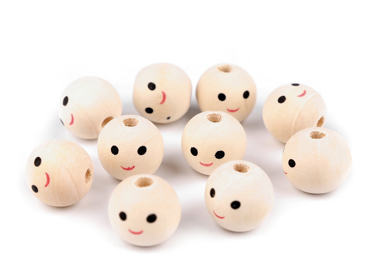 Korálky dřevěné s obličejem 91 vel.18mm nelakované