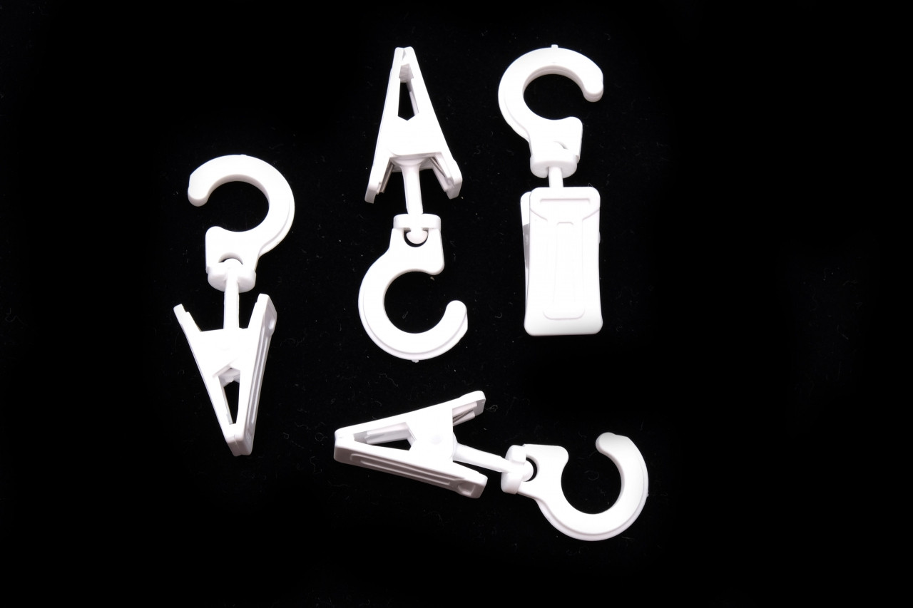 Žabky využijete na záclony. Díky materiálu, ze kterého jsou vyrobené, mají nízkou hmotnost. Háček pohodlně zavěsíte na garnýže a jsou otočné! Žabky mají na koncích zoubky.