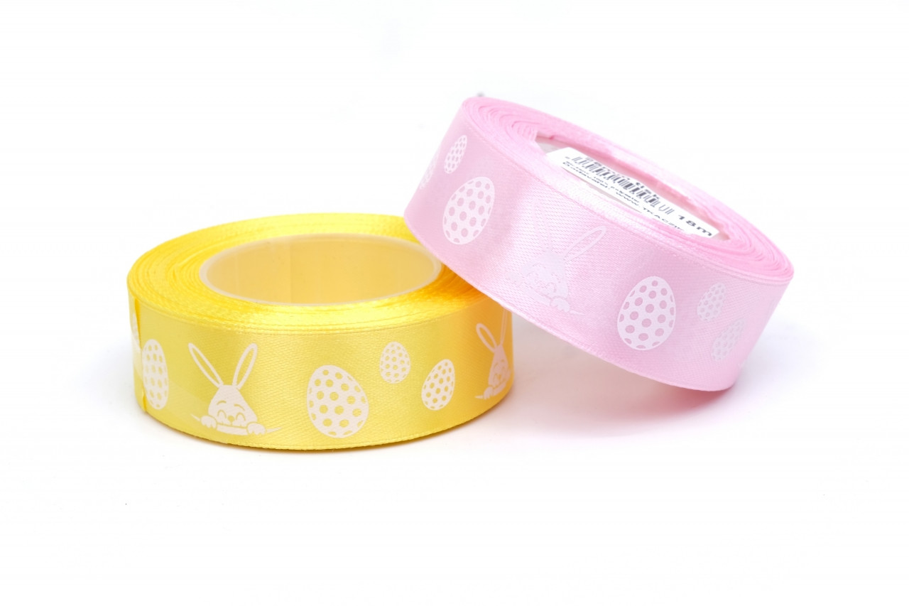 Stuha atlasová vzor velikonoční vejce a zajíc šíře 25mm