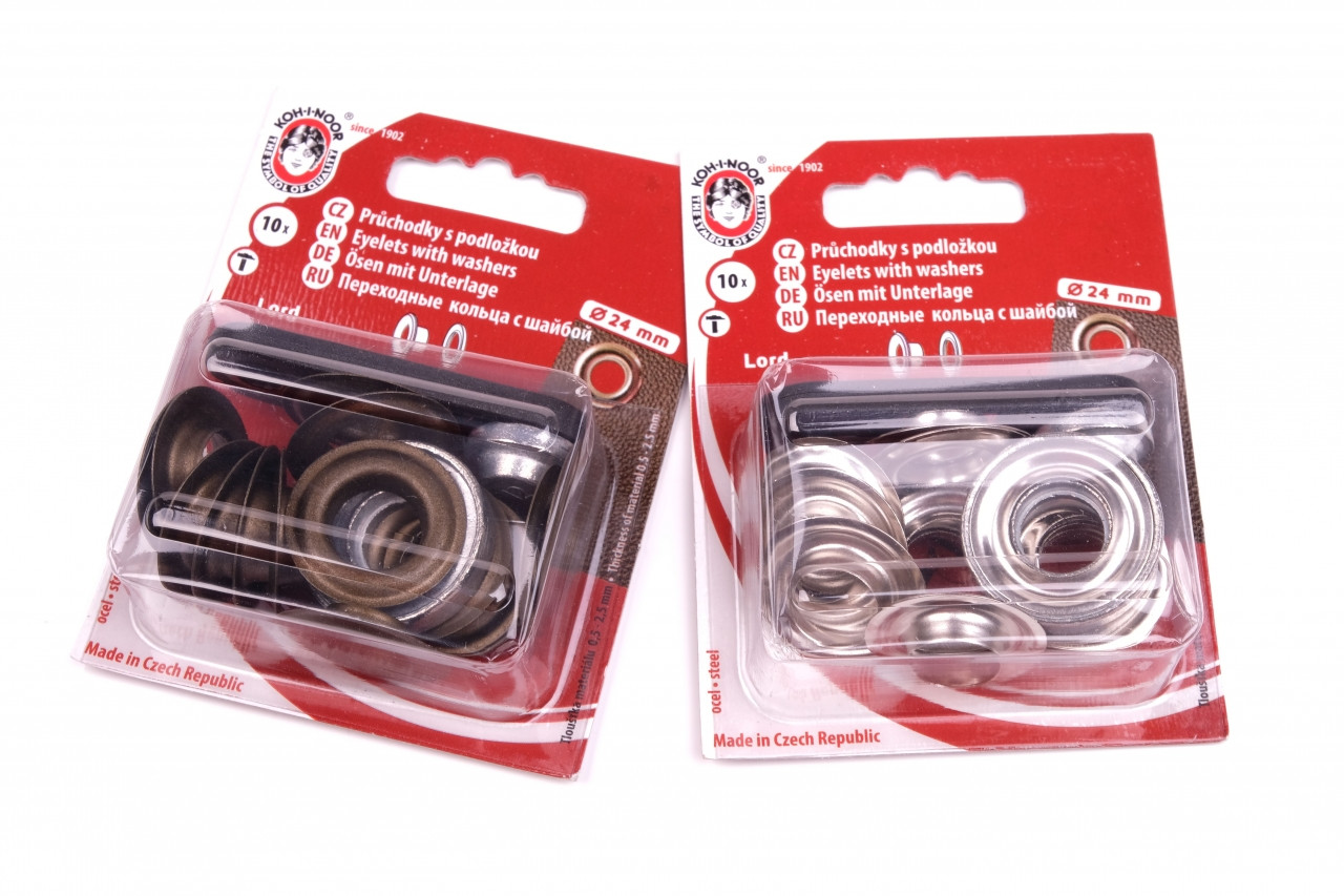 Velikost 12 x 5 x 24mm, baleno po 10ks Používá se jako průchodka pro šňůry a gumy. Průměr otvoru průchodky a podložky je 5mm. Nýtování se provádí lisem.