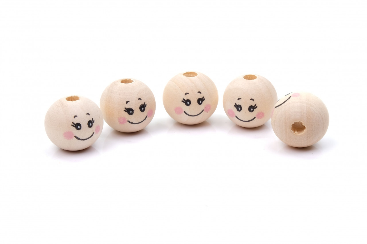 Korálky dřevěné s obličejem 134 vel. 20mm nelakované