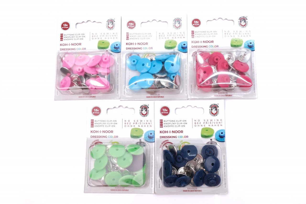 Velmi kvalitní snímatelné plastové knoflíky DRESSKING, 10 ks na kartě. Knoflík kalhotový Dressking průměr 17 mm je snímatelný, vhodný na kalhoty, džínové nebo plátěné sukně a kraťasy, pracovní oděvy, ložní prádlo apod. Připevňování se provádí ručně, špičkou spodního dílu se propíchne látka.