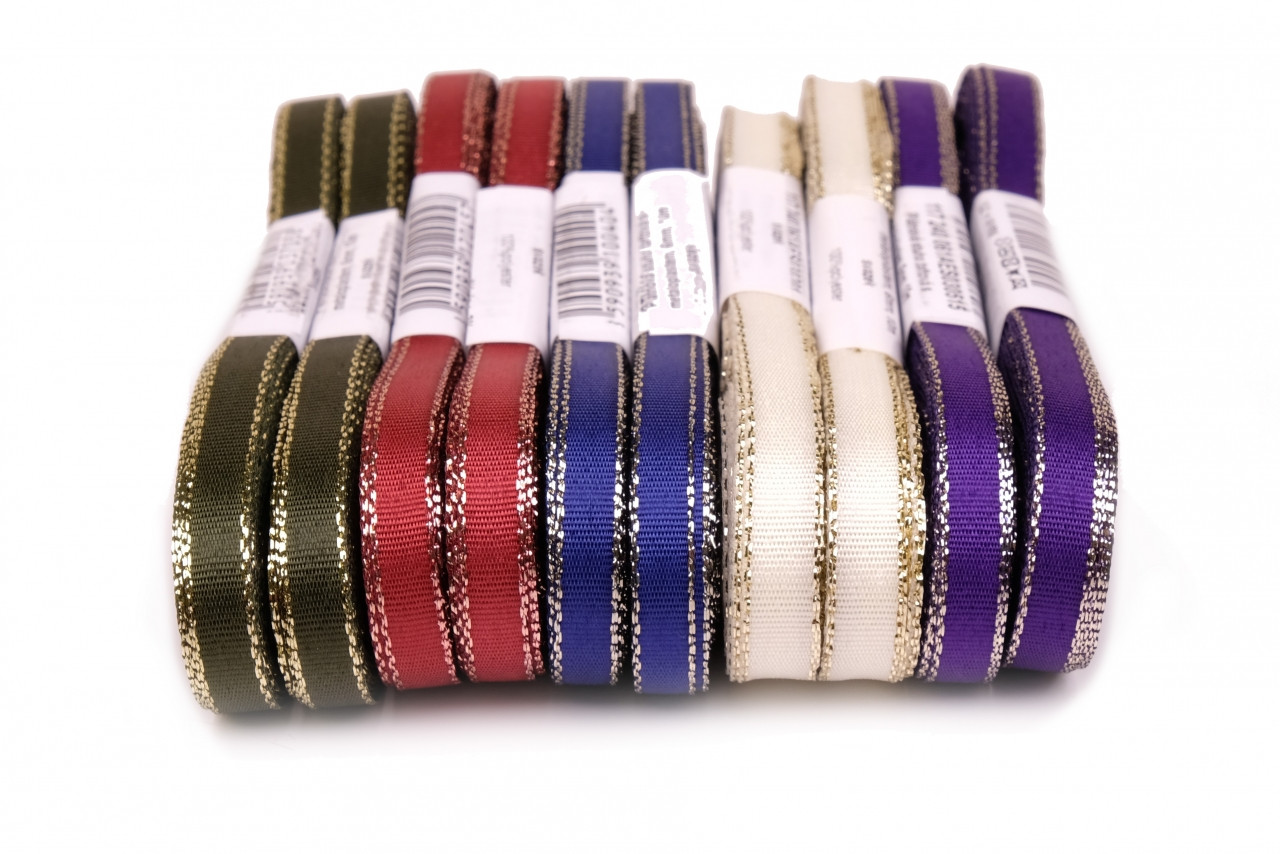 Stuha taftová s rexorovým okrajem vhodné ke svatebním příležitostem jak k dekoraci na balíčky tak o ozdobě. Alternativní název: stuha s rexorem, stuha svatební, stuha s lurexem, adjustačka, mašle, STUHA.