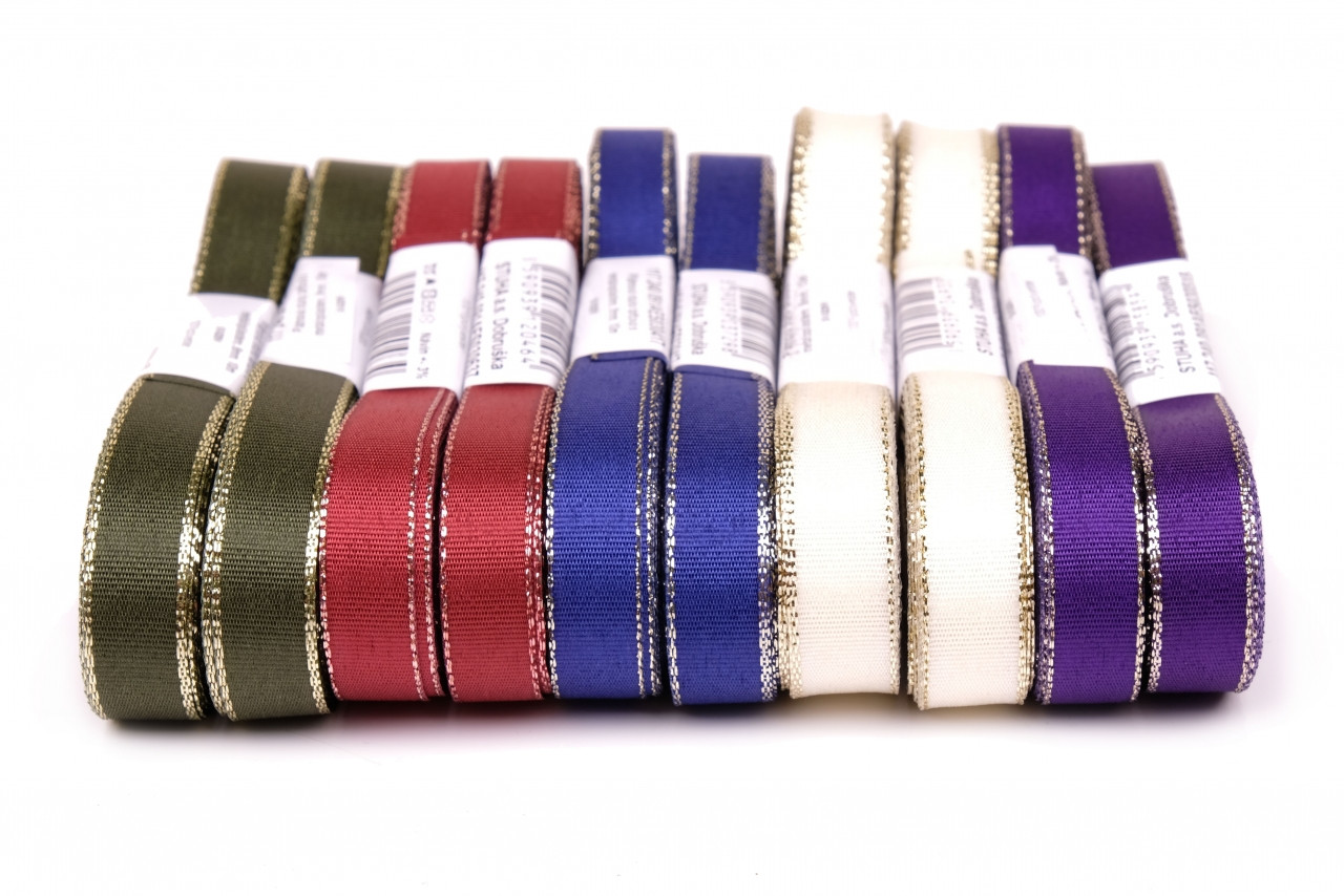 Stuha taftová s rexorovým okrajem vhodné ke svatebním příležitostem jak k dekoraci na balíčky tak o ozdobě. Alternativní název: stuha s rexorem, stuha svatební, stuha s lurexem, adjustačka, mašle, STUHA.