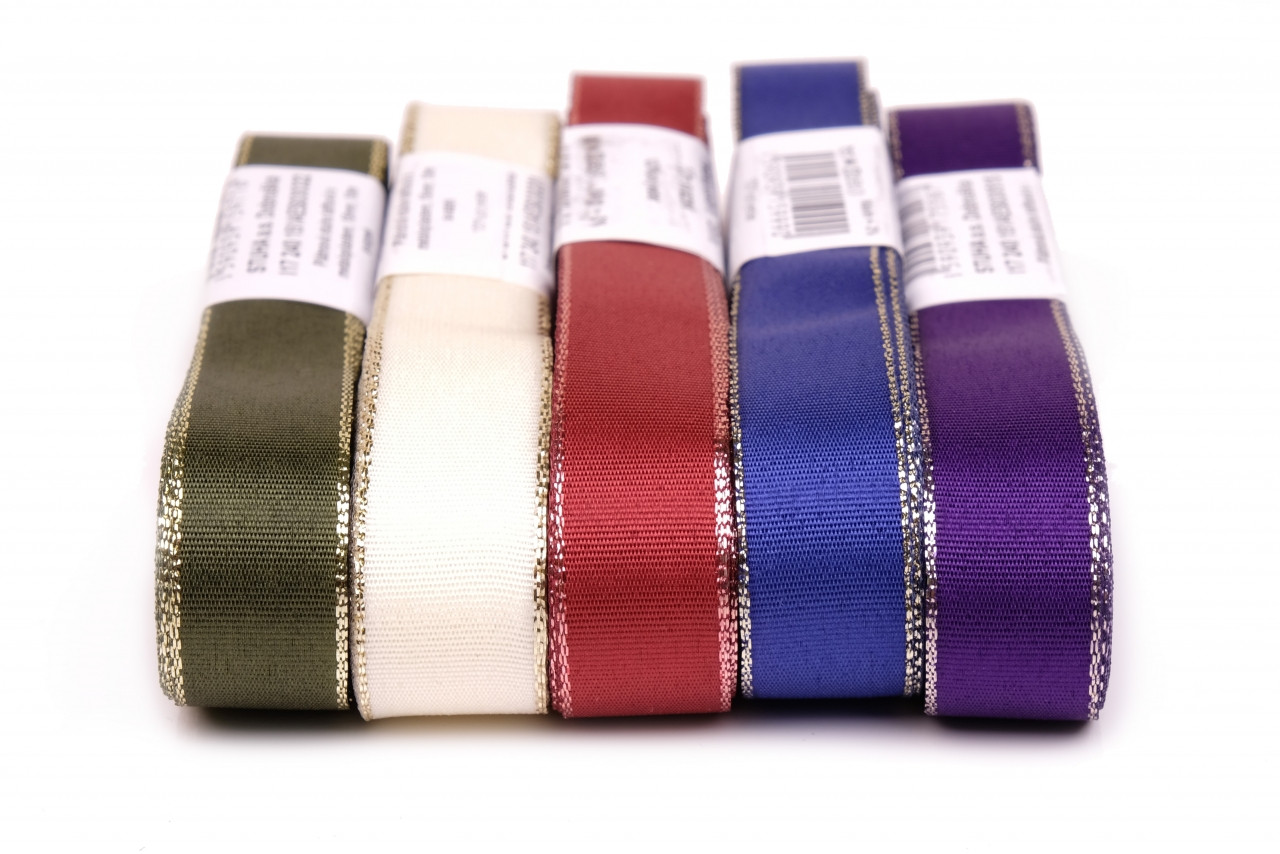 Stuha taftová s rexorovým okrajem vhodné ke svatebním příležitostem jak k dekoraci na balíčky tak o ozdobě. Alternativní název: stuha s rexorem, stuha svatební, stuha s lurexem, adjustačka, mašle, STUHA.