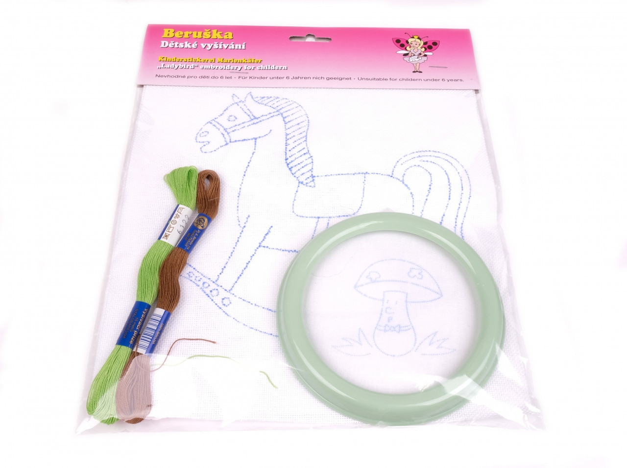 Souprava obsahuje plastový rámeček s vyšívací předlohou na které je natištěný motivek, další dvě přehlohy na vyšívání o rozměrech 23 x 25 cm, vyšívací přízi mouline 4ks. Tato souprava vyšívání je vhodná pro děti od 6 let.