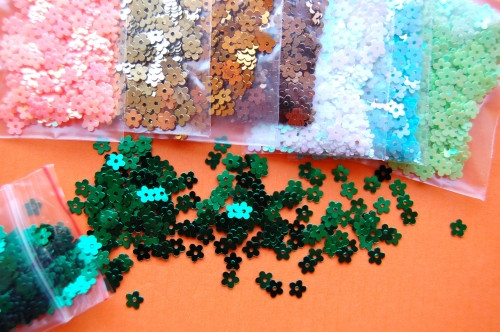 velikost 5mm, baleno v sáčku po 3g. Flitry slouží k ozdobě různých oděvních doplňků nebo oblečení.