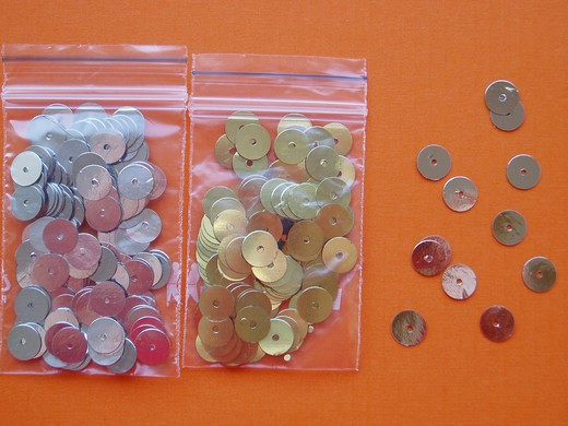 velikost 8mm, baleno v sáčku po 3g. Flitry slouží k ozdobě různých oděvních doplňků nebo oblečení.
