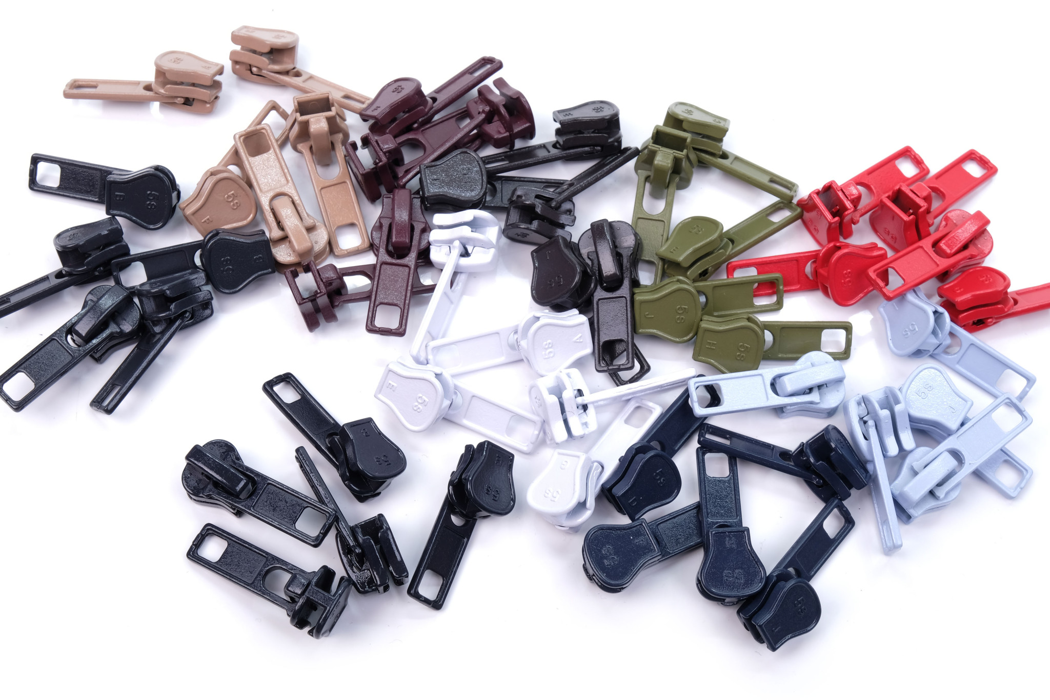Jezdec ke kostěným zipům šíře zubů 5mm. Jezdec je s aretací tzv. autolock vhodný k metrážovým kostěným zipům 5mm používavé na tašky, batohy, spacáky, pytle atd. Alternativní název: jezdec ke kostěným zipům, uzávěr, přívěsek.